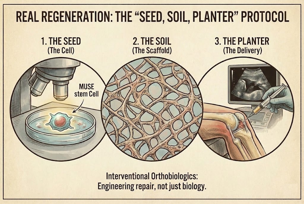 The Seed (The Cell): A viable, potent stem cell (like the MUSE cells I use).