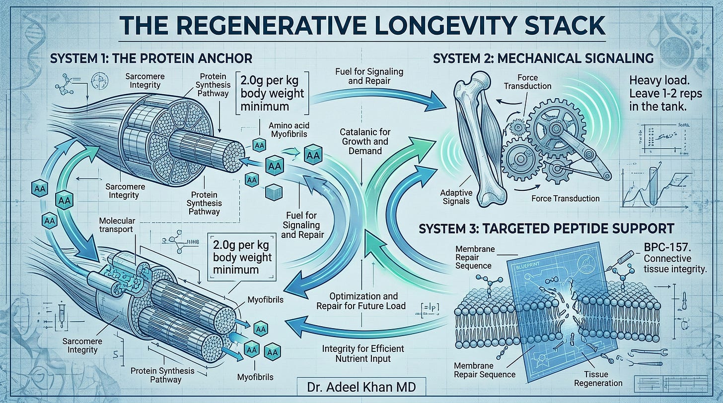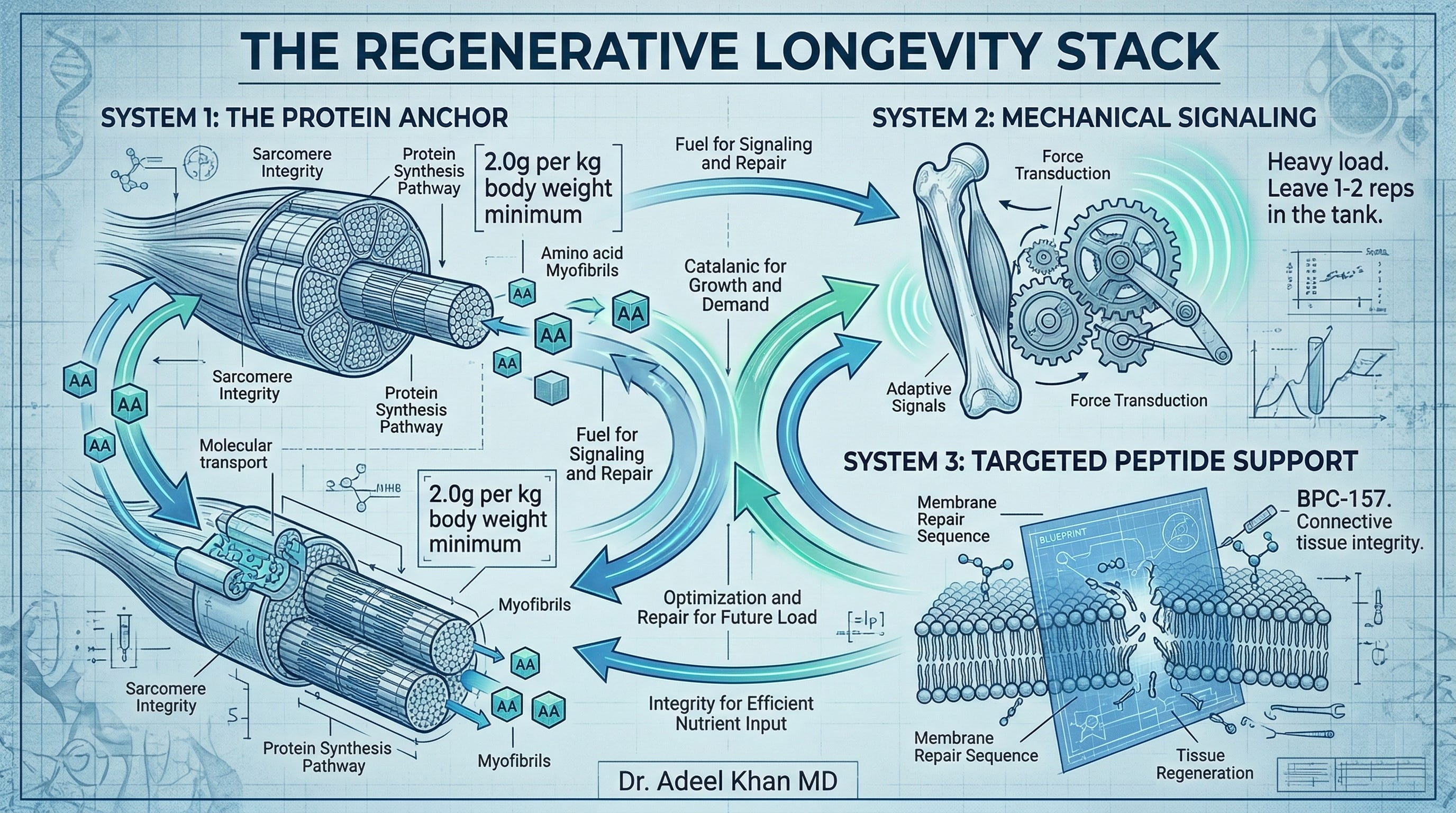 1. The Protein Anchor (The Building Blocks) You cannot maintain infrastructure in a caloric deficit without a massive influx of raw materials.