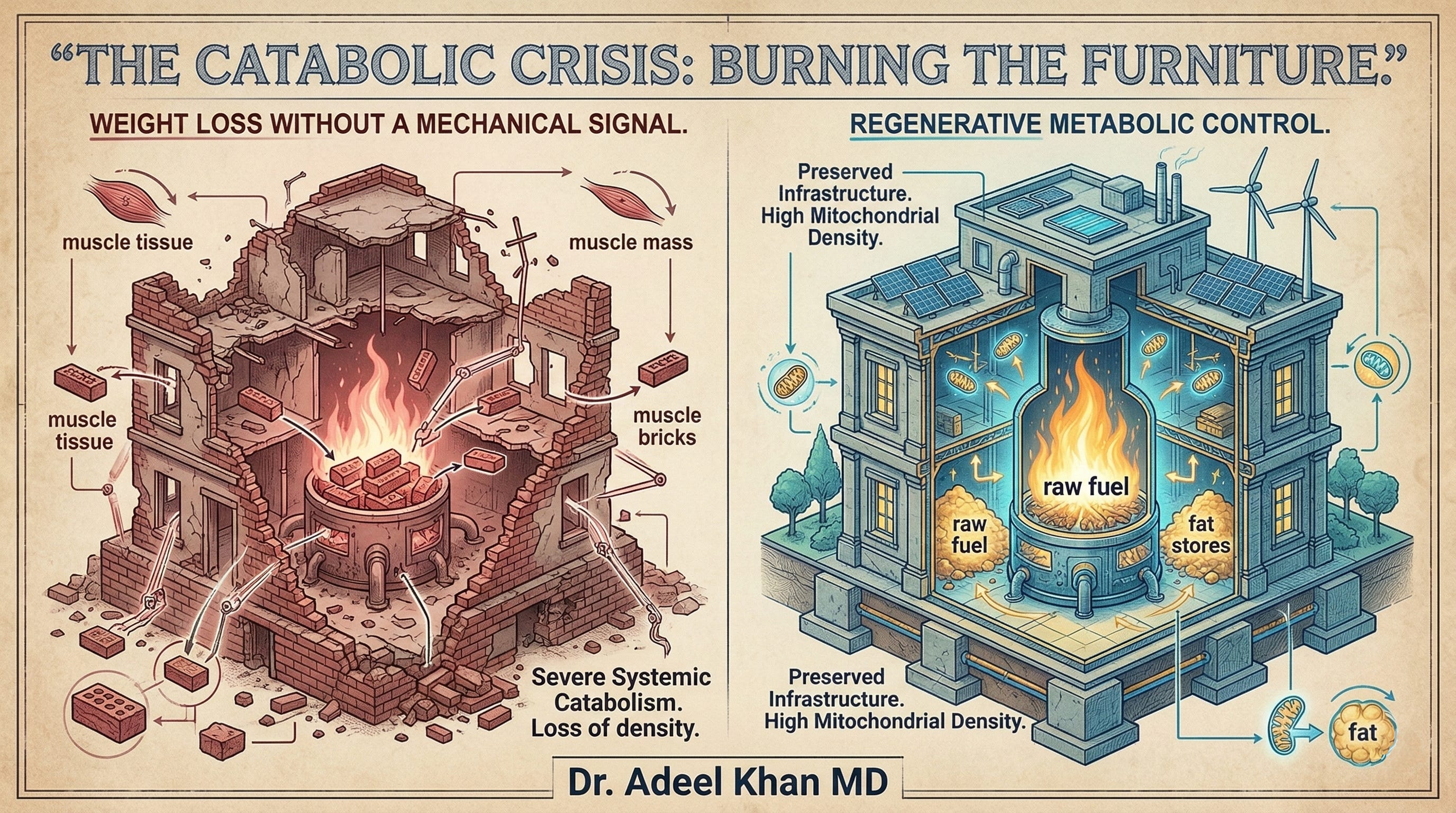 When you force rapid weight loss without sending a structural signal to your body, you do not just lose fat. You sacrifice muscle mass. You are burning the furniture to heat the house.
